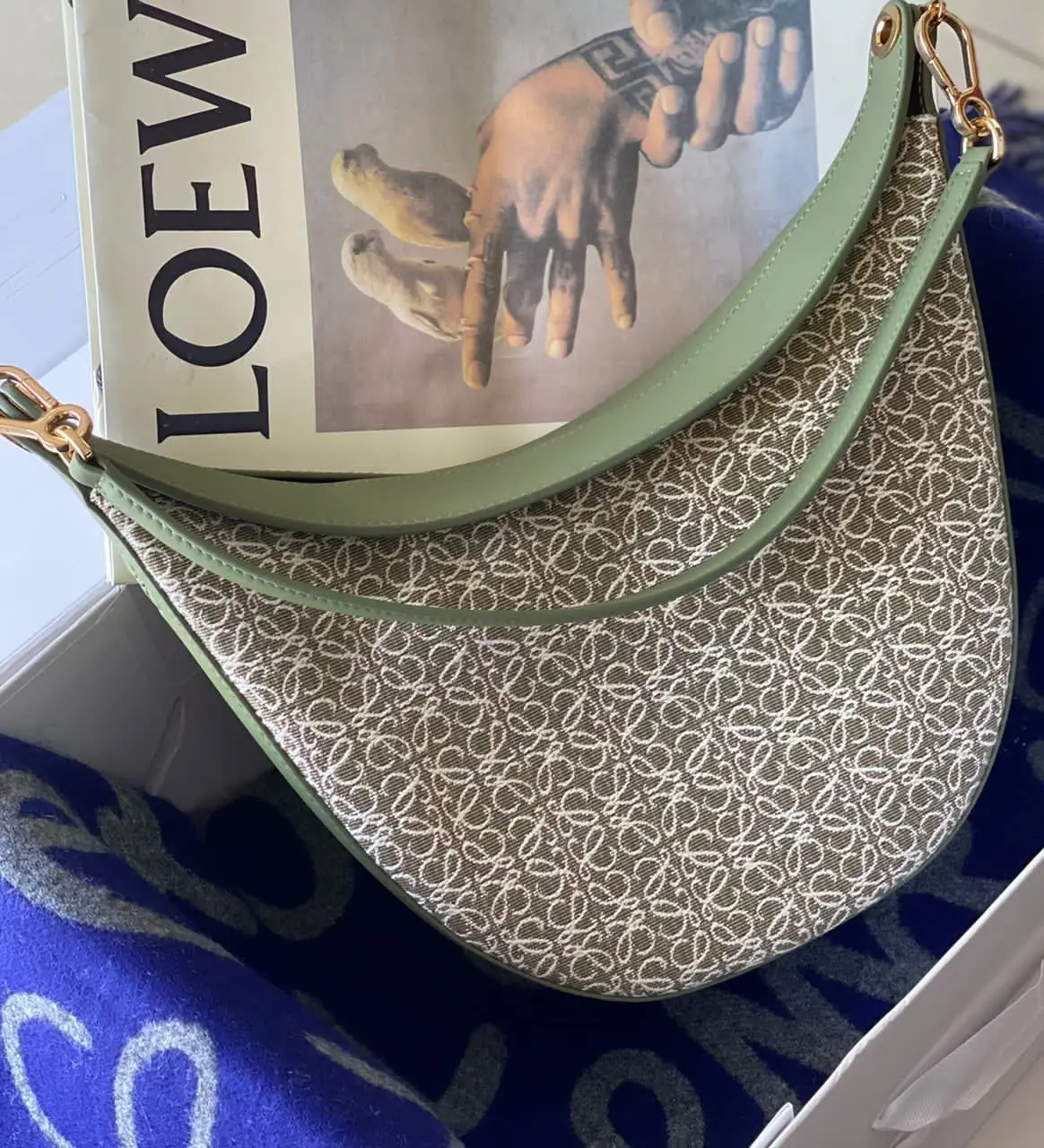The Loewe Luna Bag in Anagram Jacquard & Classic Calfskin offers luxury and versatility. Meticulously crafted with Super Master quality, it features a structured design, top handle, and adjustable strap for effortless elegance.