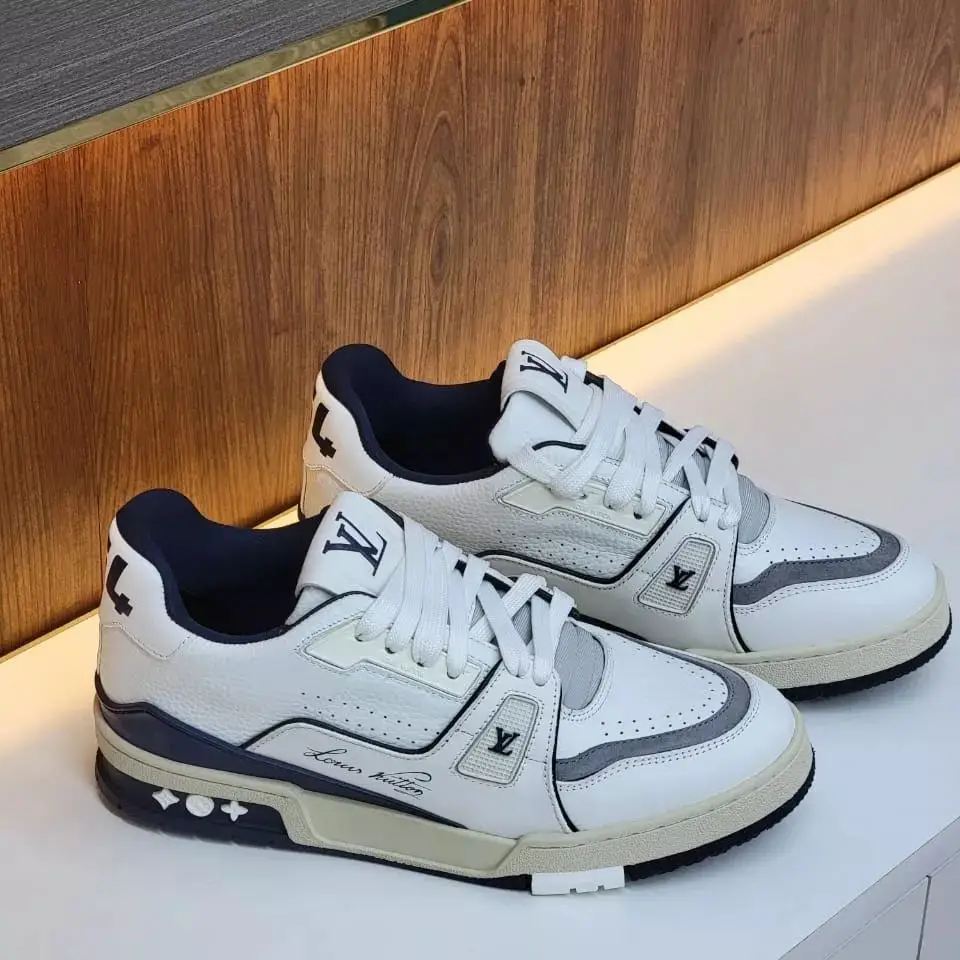 Explore luxury with Louis Vuitton White Blue Leather Sneakers. Crafted from premium materials with a sleek design, now 20% off. Elevate your style today!