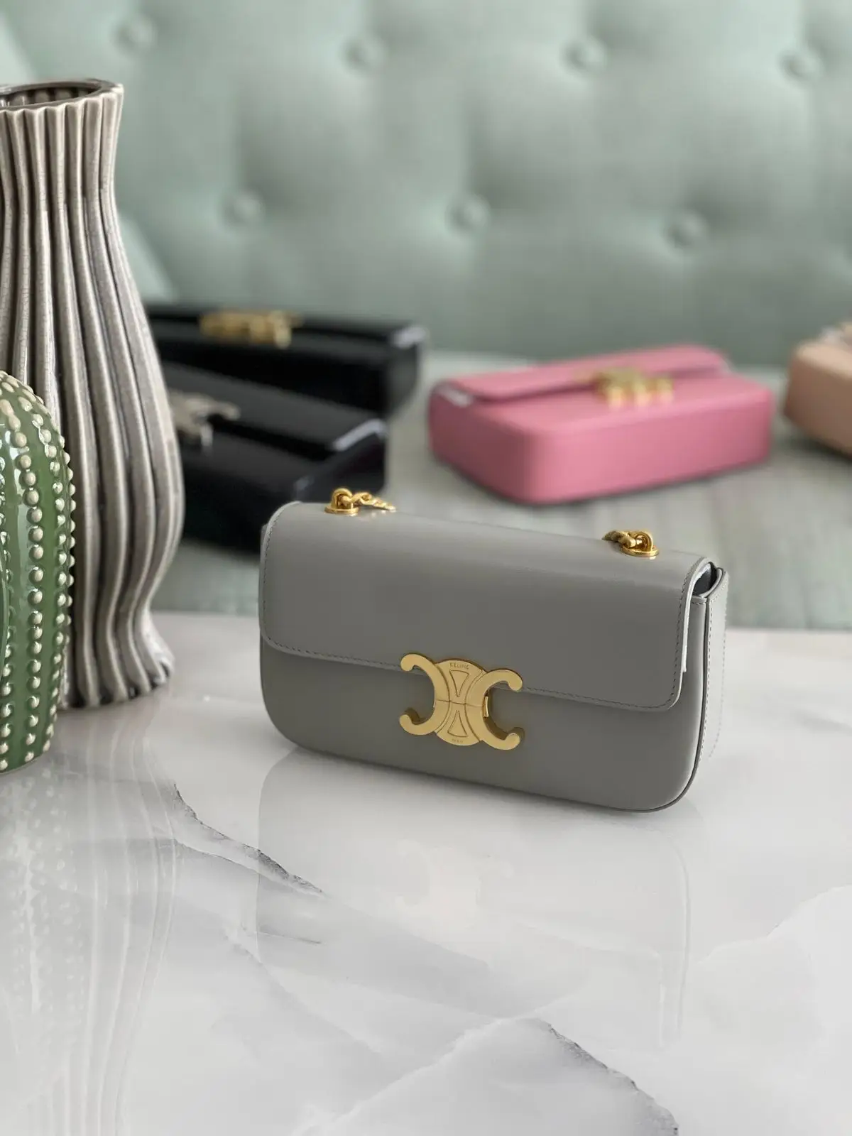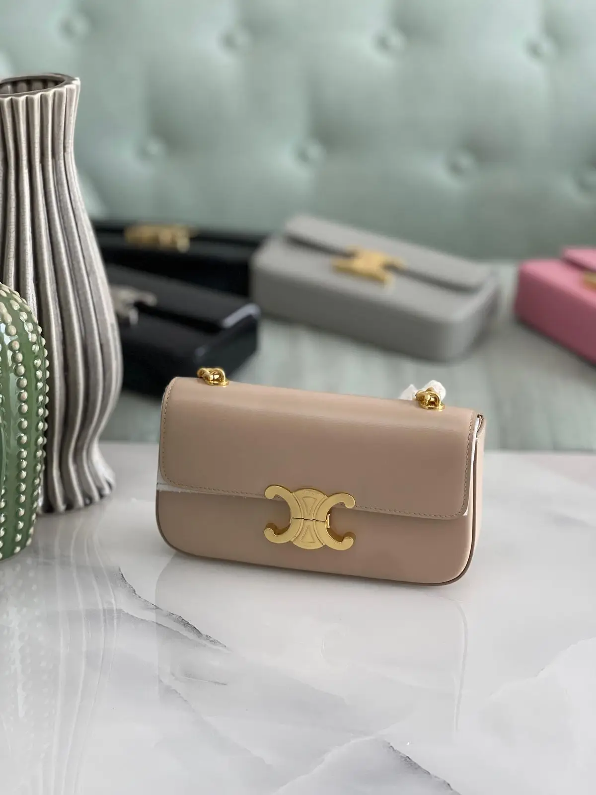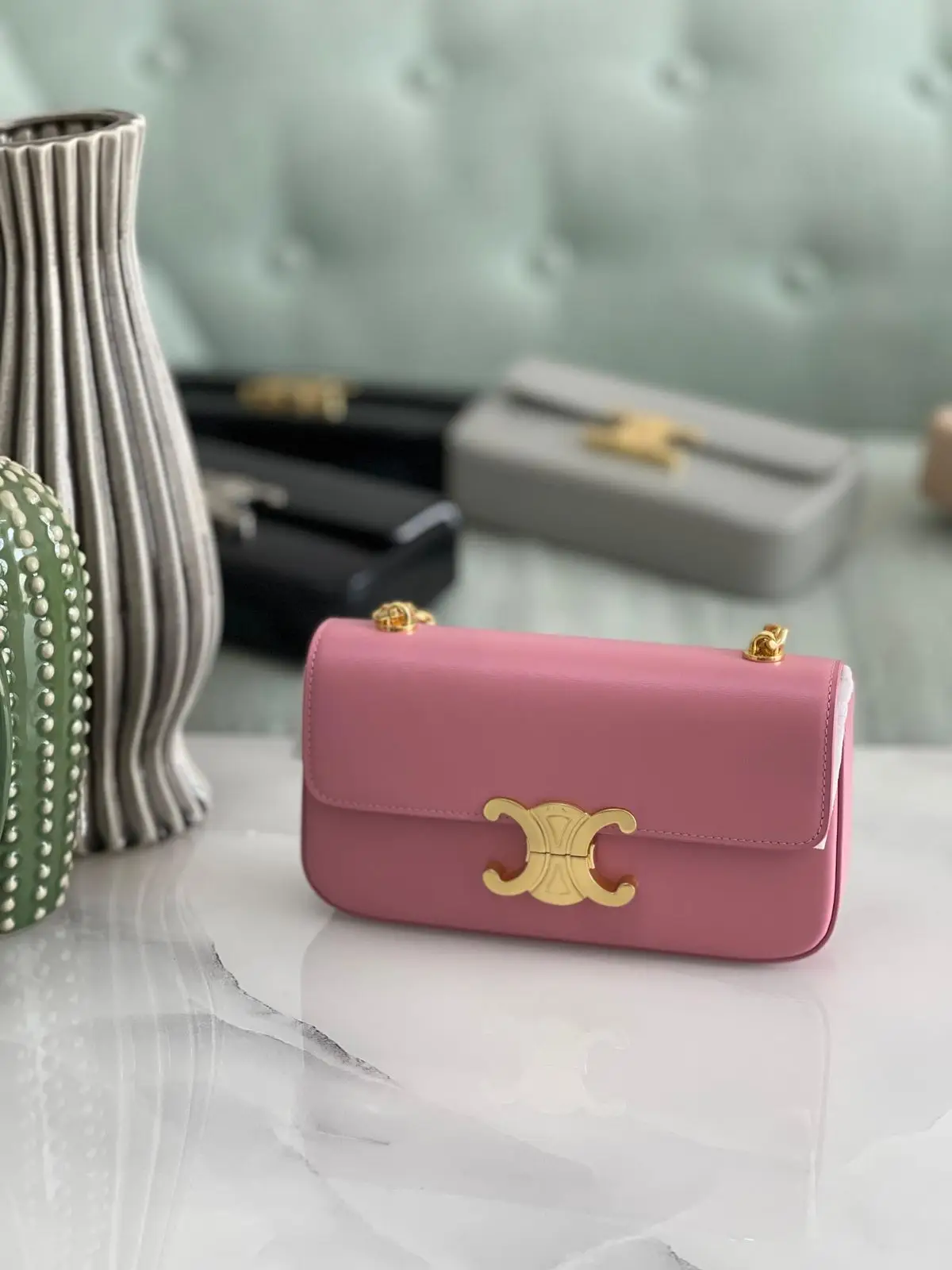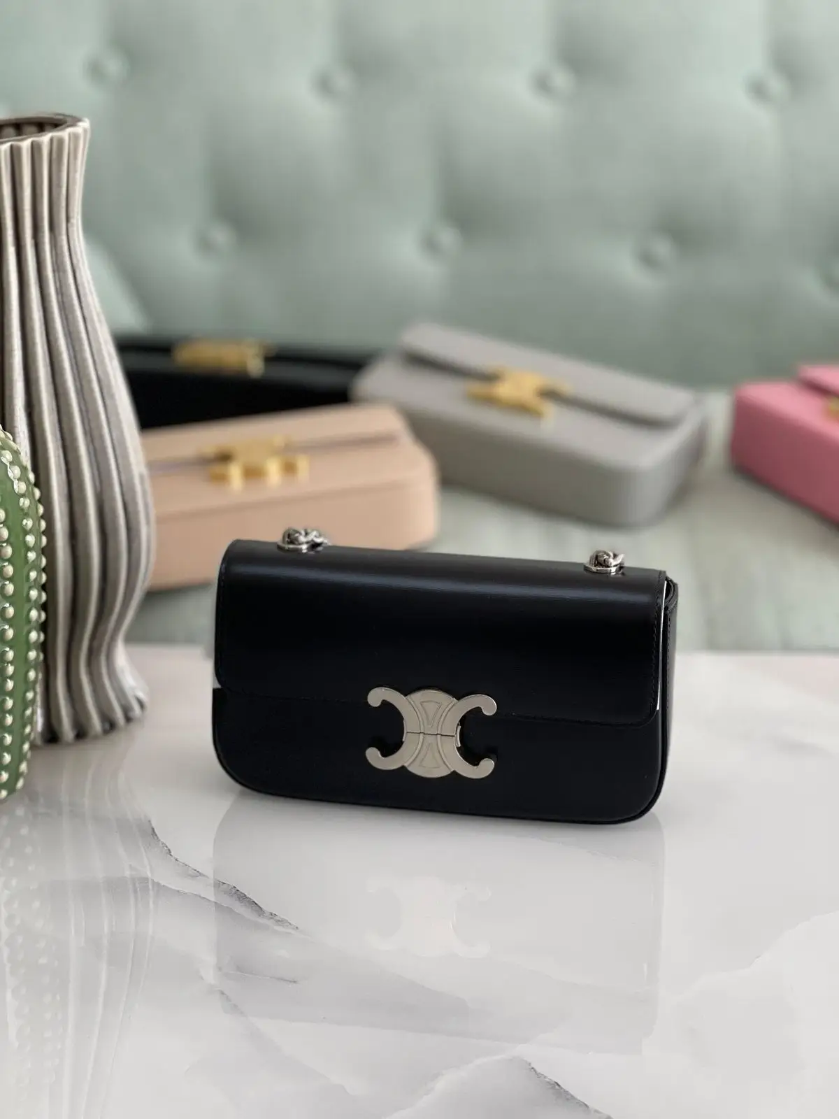 The Celine Luxury Leather Chain Bag combines premium leather, a chic chain strap, and elegant design for a versatile and luxurious accessory.