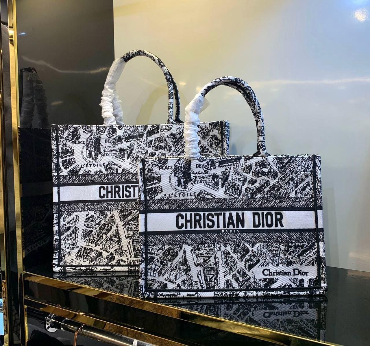 The Medium Dior Book Tote in White and Black Plan de Paris Embroidery transcends fashion. Embodying a canvas where sophistication and artistic expression converge seamlessly. Dimensions: 36 x 27.5 x 16.5 cm / 14 x 11 x 6.5 inches (Length x Height x Width) The bag’s large size can accommodate an 15-inch laptop, a pouch, a wallet, a phone, sunglasses and lipstick