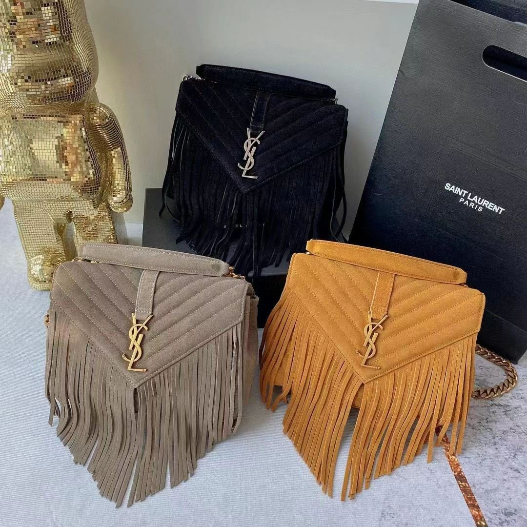 COLLEGE MEDIUM CHAIN BAG IN LIGHT SUEDE WITH FRINGES – Dubai Fashion LUX