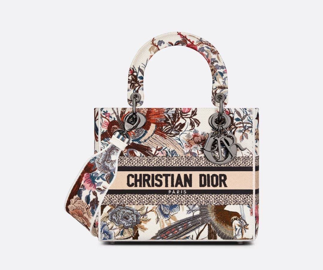 Design MEDIUM LADY D-LITE BAG Ecru Multicolor Jardin d’Hiver Embroidery – Dubai Fashion LUX