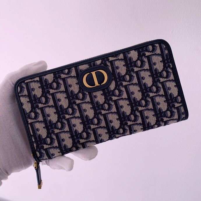 Blue Dior Oblique jacquard ‘CD’ signature on the front Leather topstitch trim 3 compartments 8 card slots 3 patch pockets 1 zipped pocket Dimensions: 19 x 9.5 x 2.5 cm