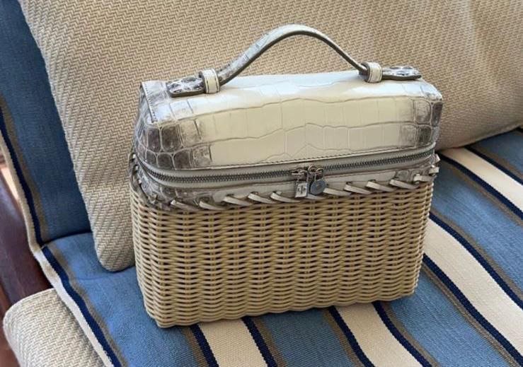 Crafted from premium wicker and leather, the Loro Piana Wicker and Leather Handbag combines artisanal elegance with practicality. A must-have for luxury fashion enthusiasts.