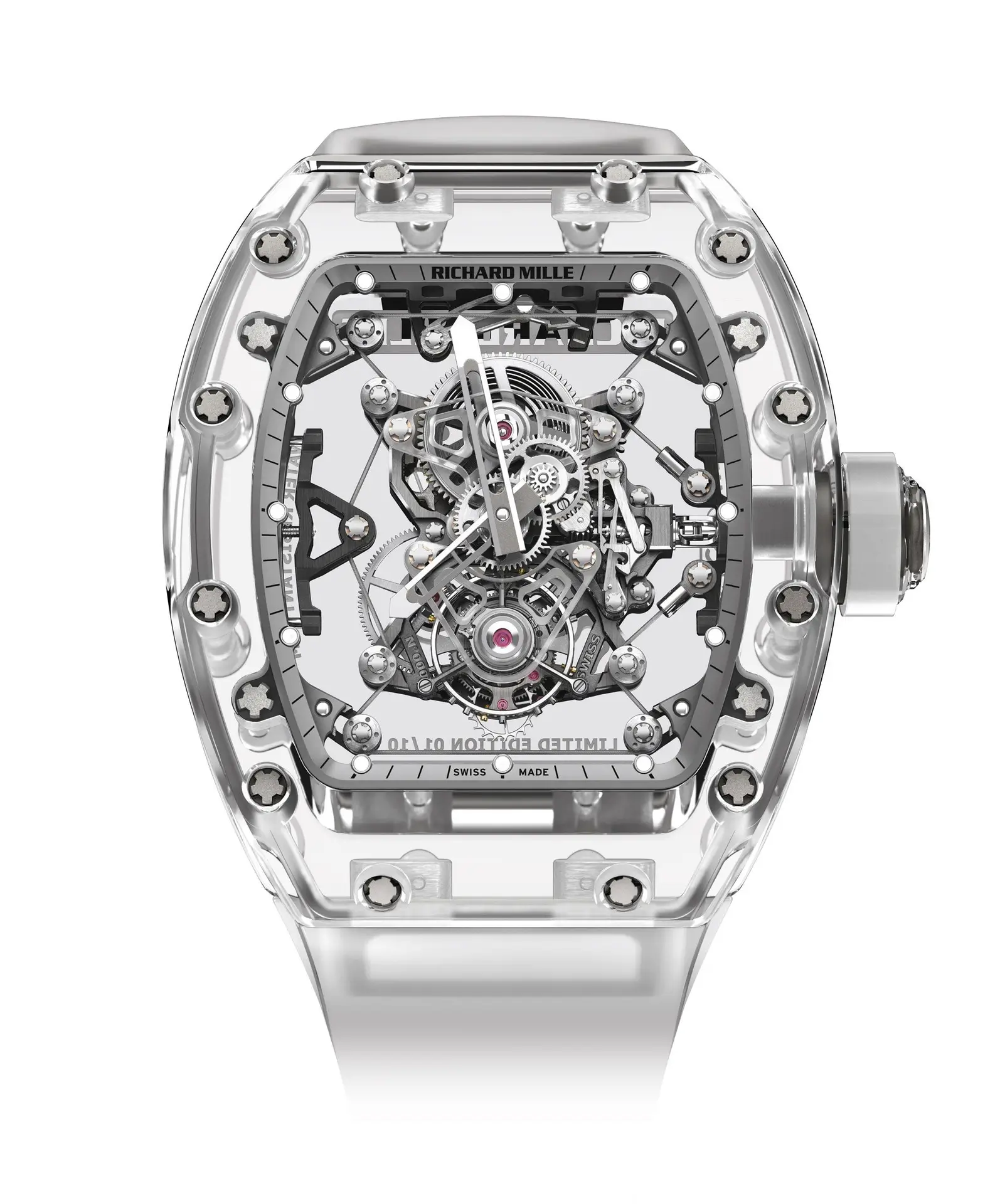 The Richard Mille RM 56-02 Tourbillon Sapphire is a horological masterpiece that redefines luxury and innovation. Crafted entirely from sapphire crystal, this ultra-exclusive timepiece offers unparalleled transparency, revealing the intricate mechanics of its manually wound tourbillon movement. The case, bezel, and caseback are meticulously machined from solid sapphire, ensuring exceptional durability and scratch resistance. With a skeletonized dial and a power reserve of 70 hours, the RM 56-02 exemplifies avant-garde engineering and haute horlogerie excellence. Limited in production, this watch is a true collector’s item for those who demand the extraordinary.