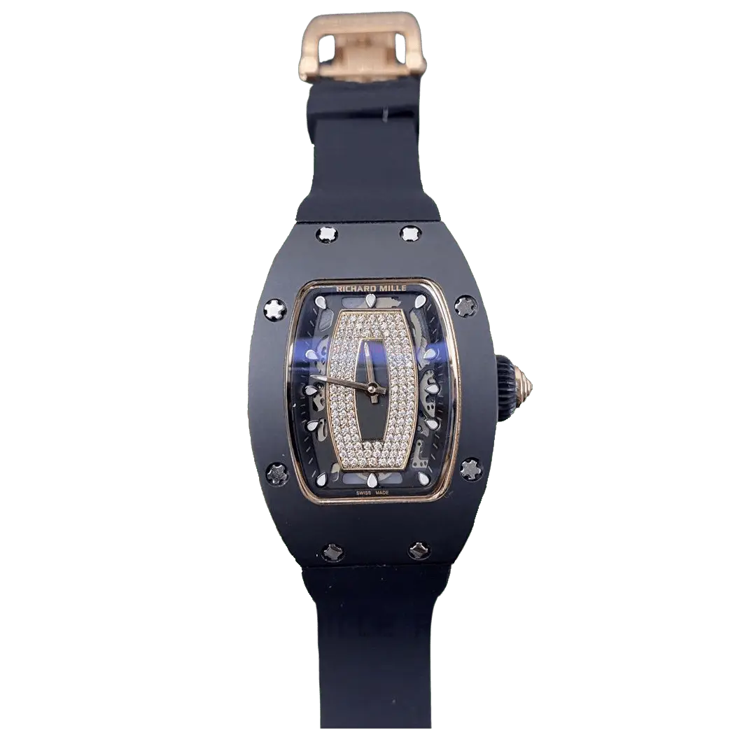 Experience the epitome of luxury and precision with the Richard Mille RM037 Replica Lady Watch in Super Master Quality. This exquisite timepiece mirrors the sophistication of the original, featuring a sleek, feminine design with a high-performance automatic movement. Crafted with meticulous attention to detail, the watch boasts a skeletonized dial, sapphire crystal glass, and a carbon fiber or ceramic case for lightweight durability. The elegant bracelet ensures a comfortable fit, making it a perfect statement piece for any occasion.